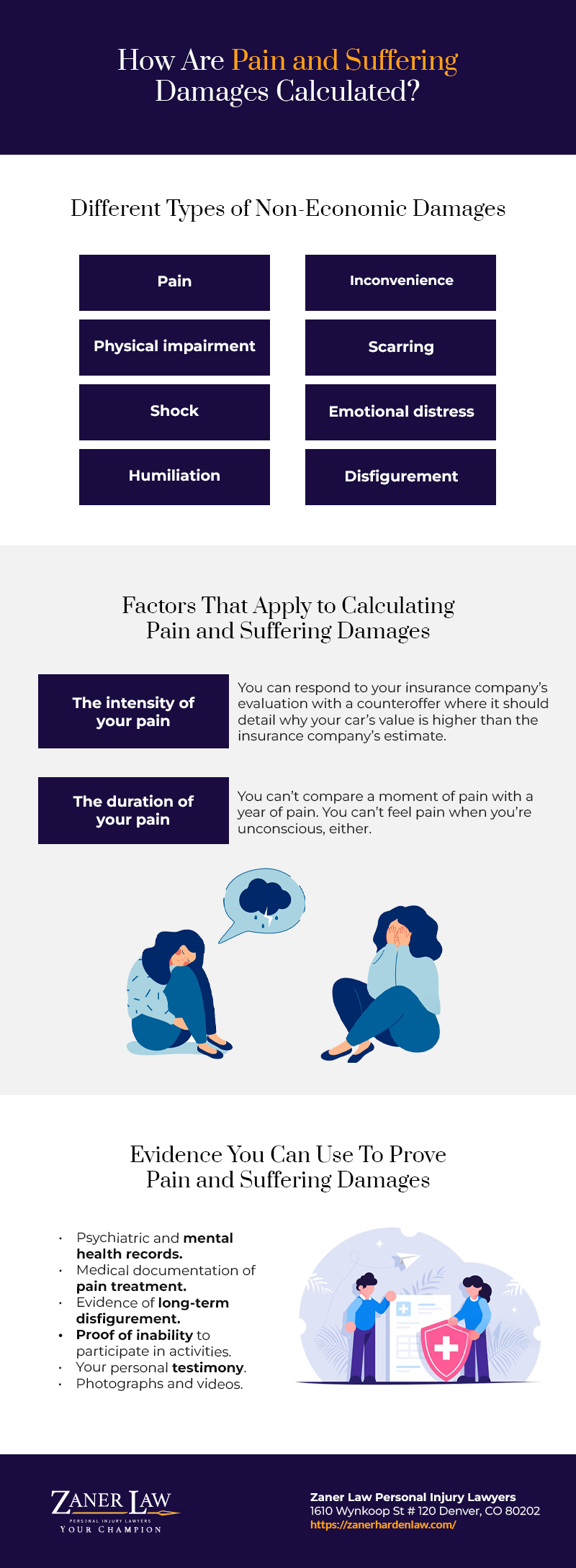 The value of a pain and suffering claim often adds up to more than half of the total value of a personal injury claim. Negotiation and, if necessary, litigation, is tricky business when you’re asking for this much money. That’s why you’re probably going to need an experienced Denver personal injury lawyer to help you.